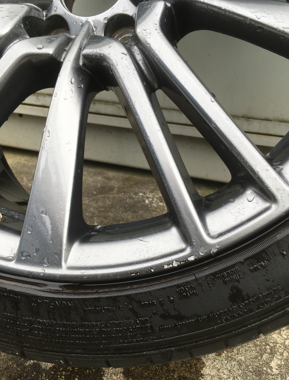 ニッサン・スカイラインのホイールガリ傷をリペアしました。