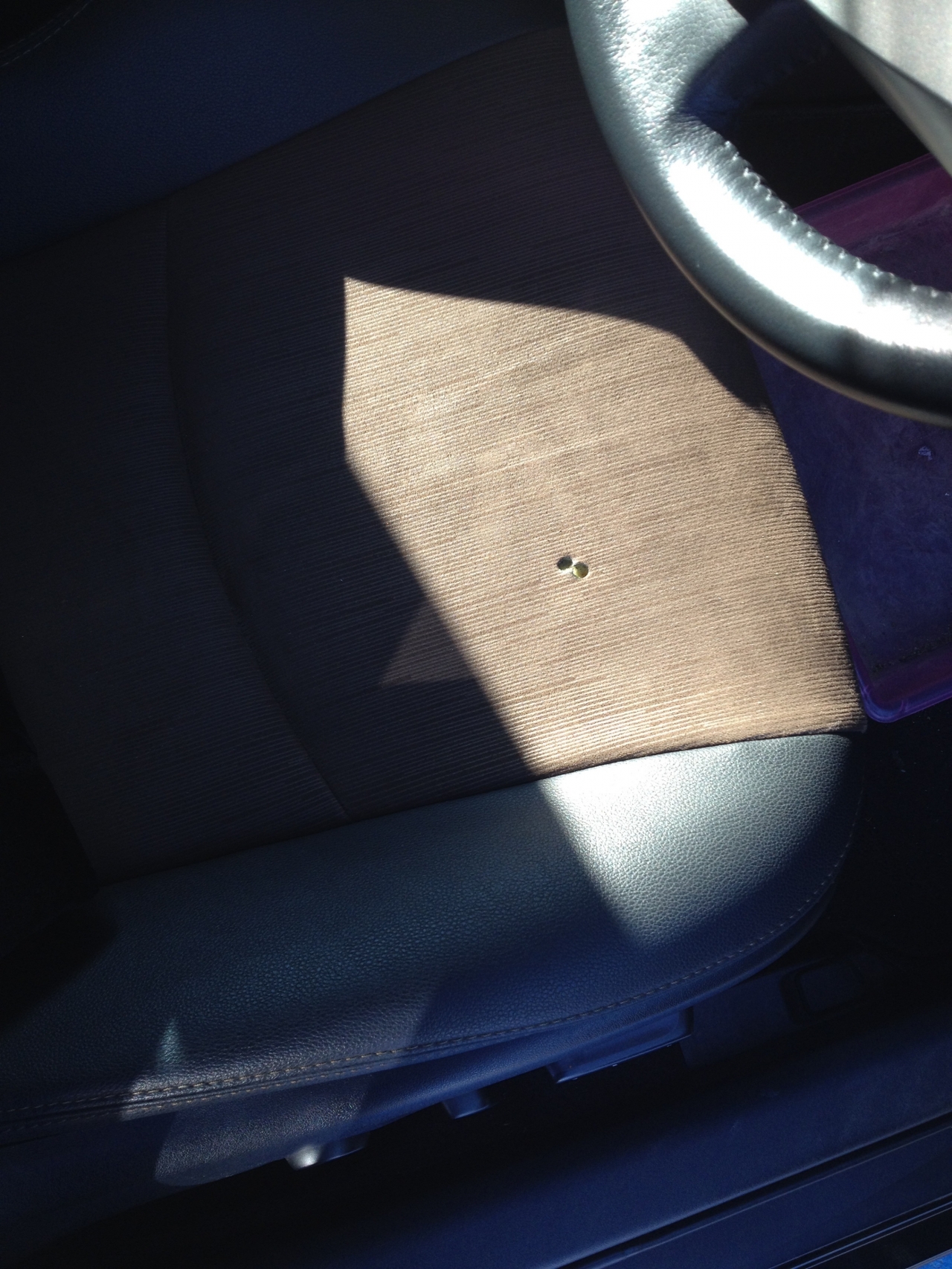 プリウス、モケットシートの焦げ穴補修しました。